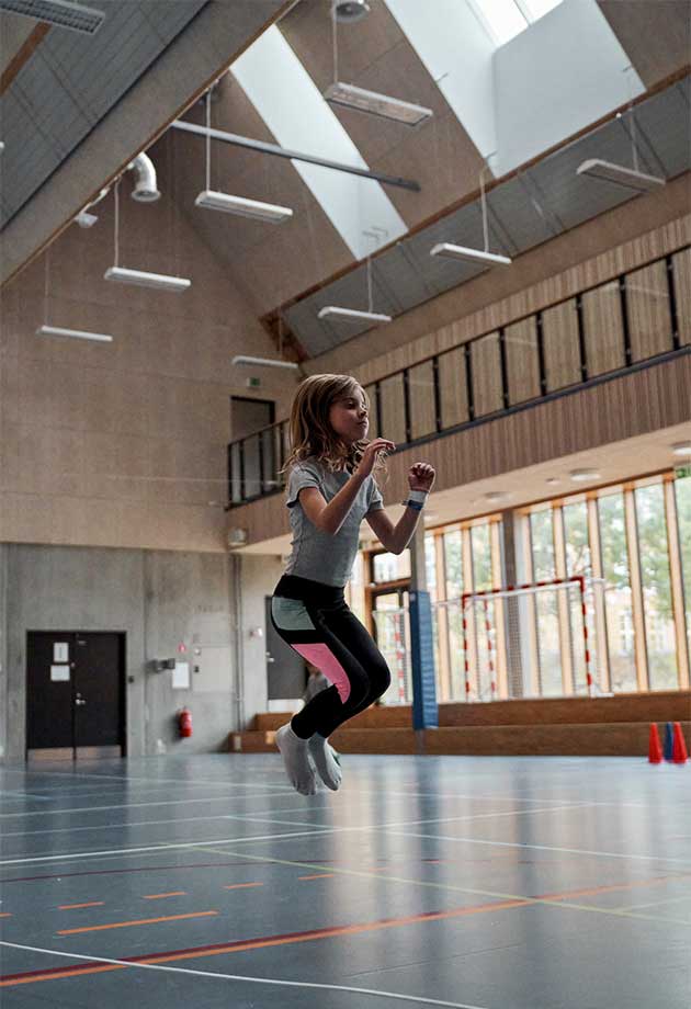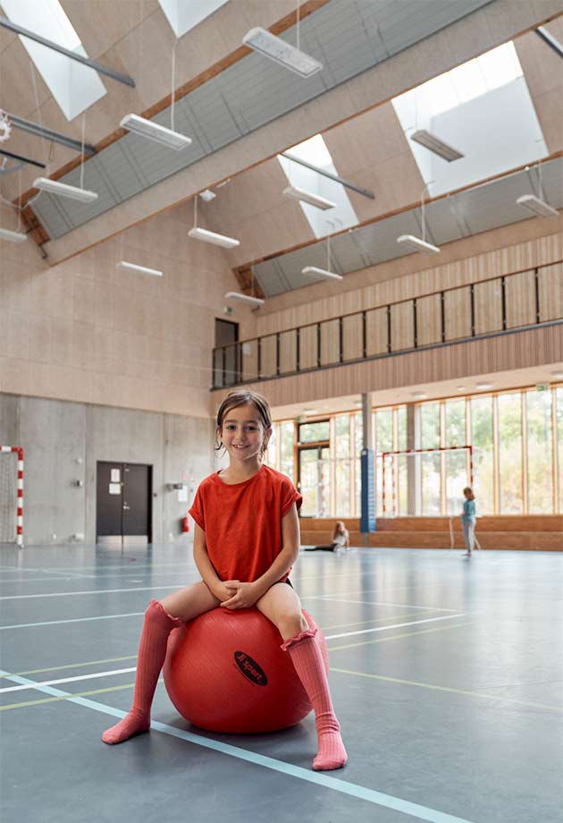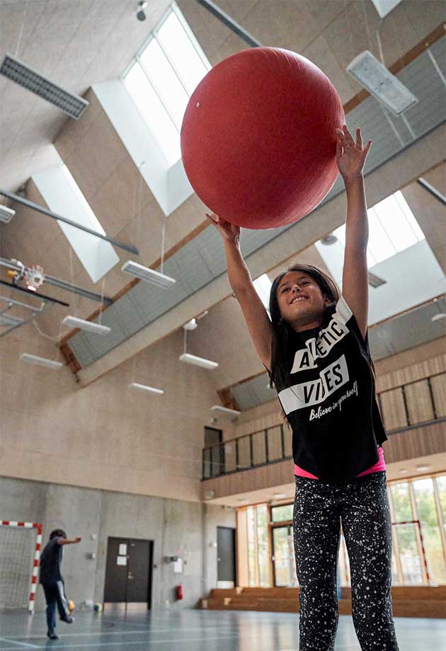 Dans les nouveaux bâtiments, la présence de lumière naturelle et de ventilation offre une sensation d'espace et d'harmonie. Grâce à l'ajout de verrières modulaires orientées au nord, les occupants bénéficient d'un environnement naturellement bien éclairé, sans surexposition à la lumière du soleil. La réduction de l'éblouissement permet aussi aux élèves de pratiquer du sport en toute sécurité.