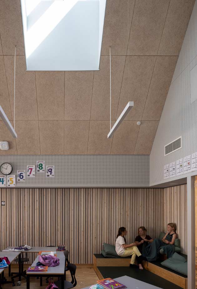 La lumière et la ventilation naturelles ont diminué la consommation d'énergie et permettent d'atteindre les objectifs de durabilité liés aux valeurs de l'école. Plus de 300 élèves et 25 membres du personnel profitent désormais d'activités extrascolaires, de salles modernes et d'un espace commun chaleureux.