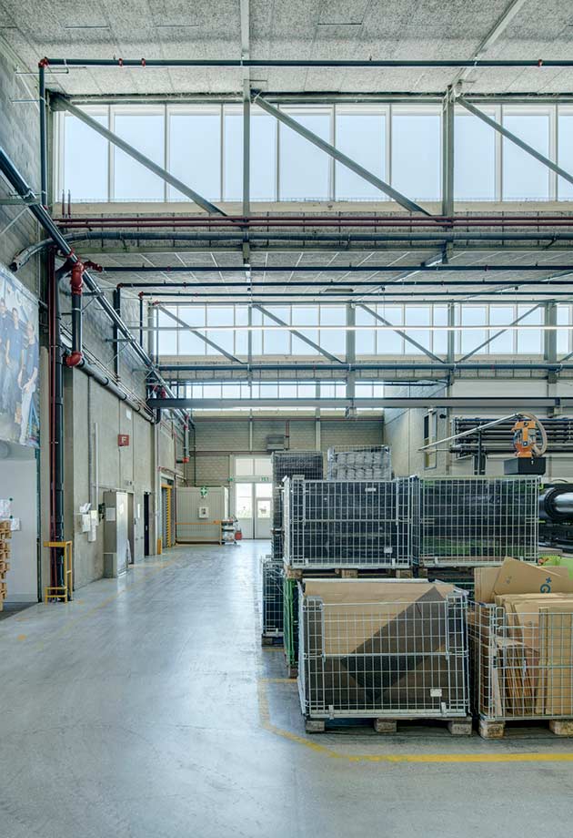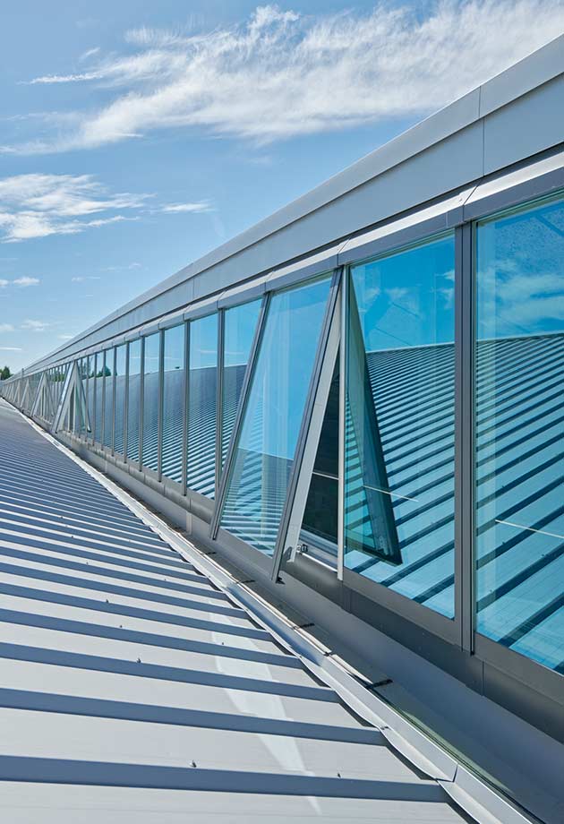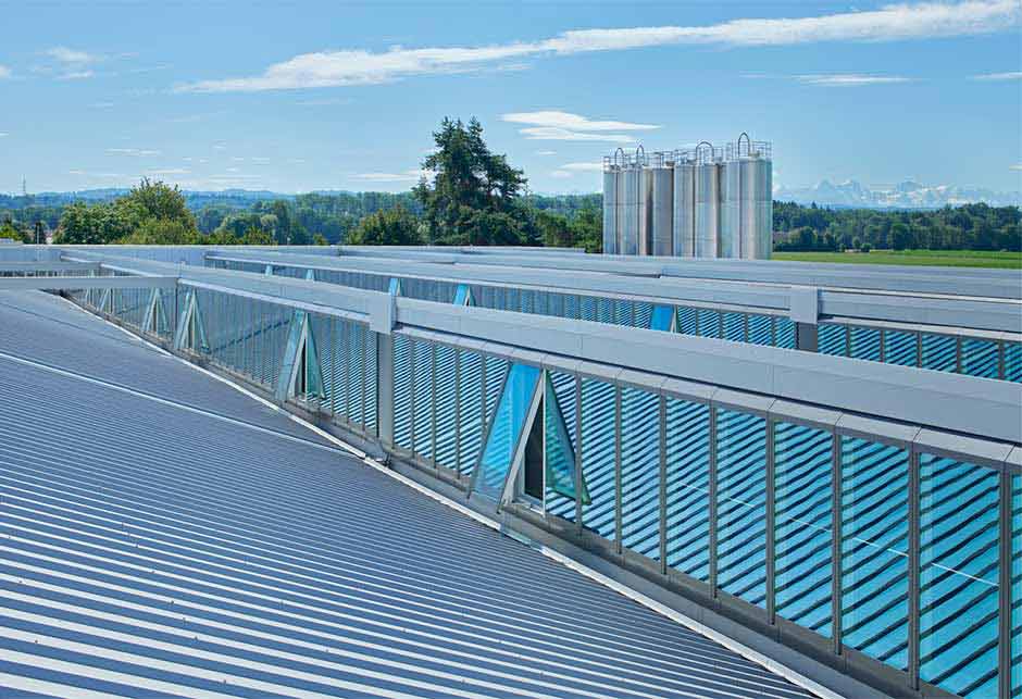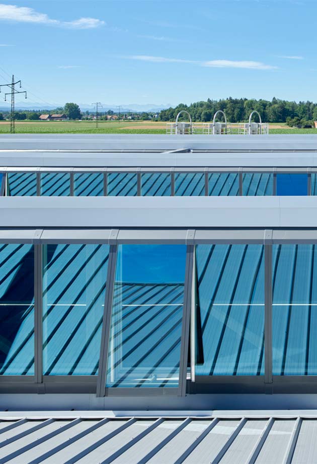 Pour conserver le cachet industriel emblématique de la succursale de GF Wavin AG, qui fabrique des systèmes de conduite pour l’approvisionnement en gaz et en eau, il est rapidement apparu que l’aspect originel du toit devait être préservé.